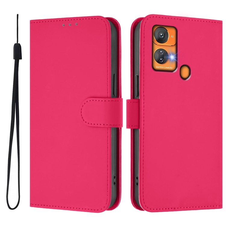 Funda de Piel Sintética con Cordón para Teléfono Oukitel C33 (Rosa y Rojo)
