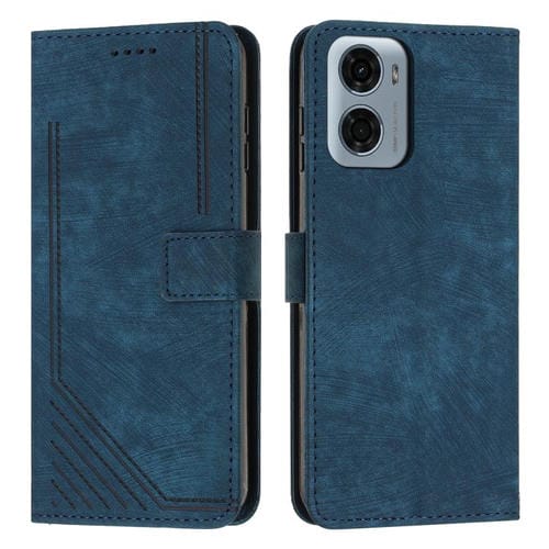 Funda de Piel Sintética con Diseño de Rayas y Cordón para Motorola Moto G05 (Azul)