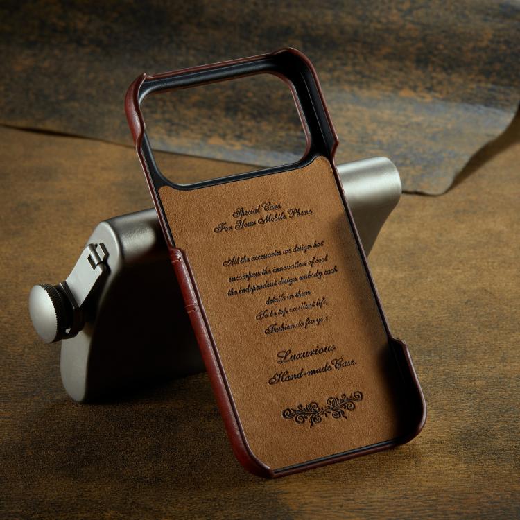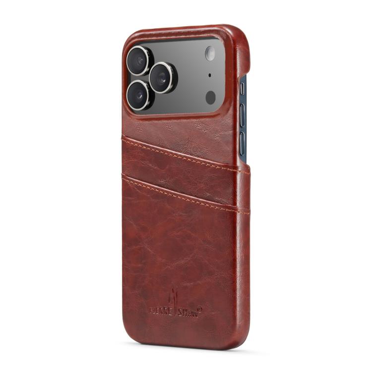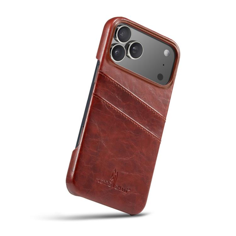 Funda de piel sintética con textura retro de cera de aceite Fierre Shann para iPhone 17 Pro (marrón)