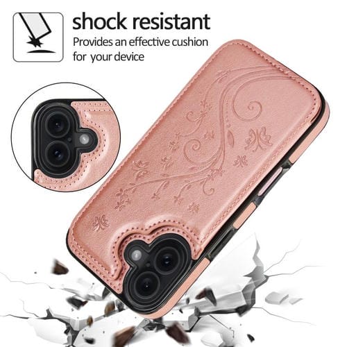 Funda de PU con doble hebilla y estampado de mariposa para iPhone 17 (oro rosa)