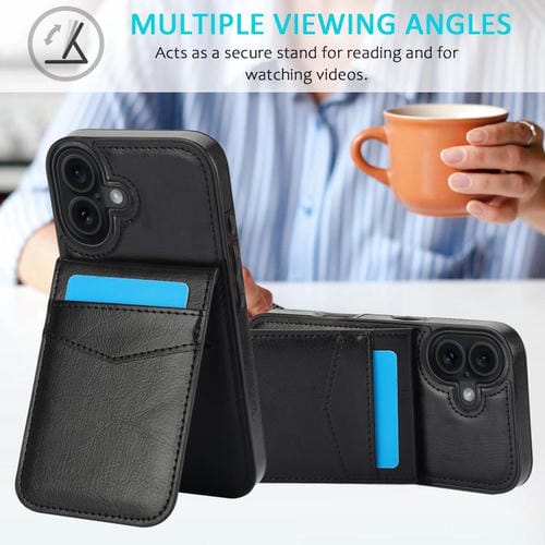 Funda de PU con ranuras para tarjetas para iPhone 17 (color sólido, negro)