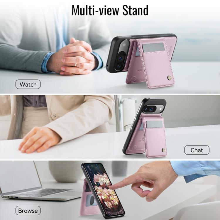 Funda de PU con Tarjetero RFID Magsafe Jeehood J06 para Google Pixel 9/9 Pro (Rosa)