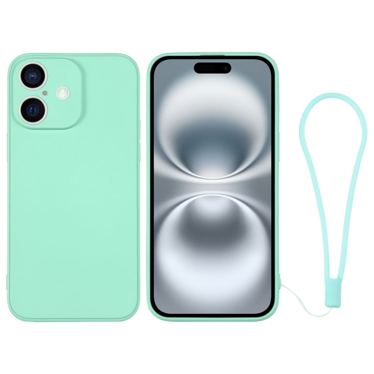 Funda de Silicona para iPhone 16 con Correa para la Muñeca (Verde Menta)