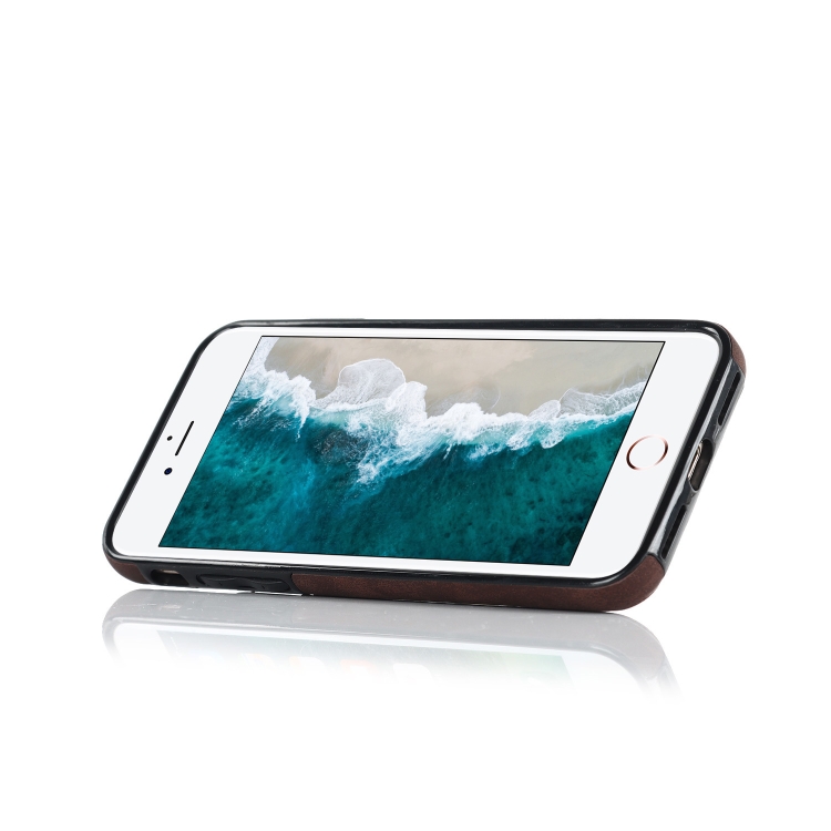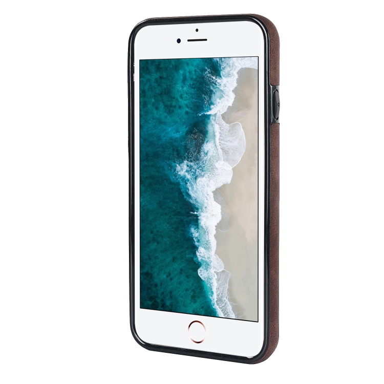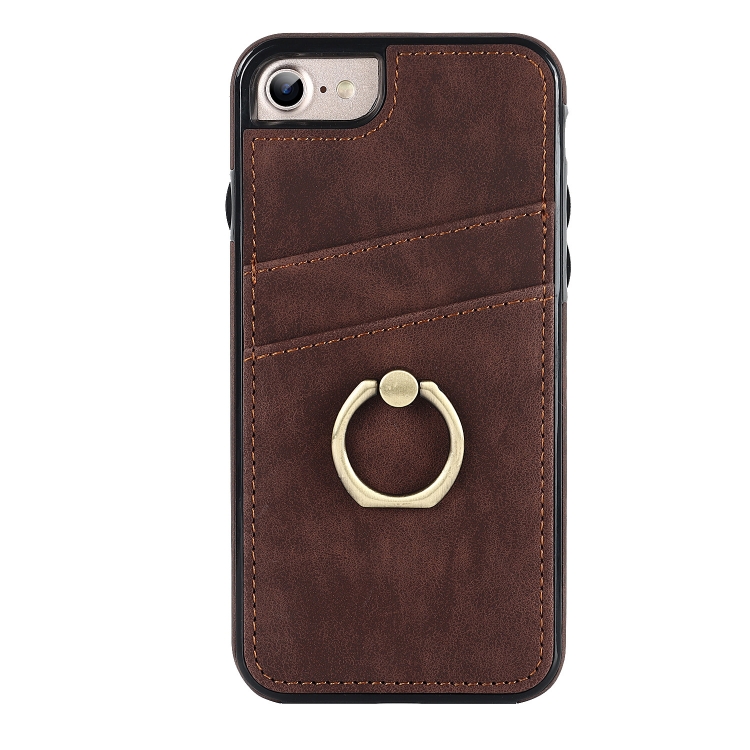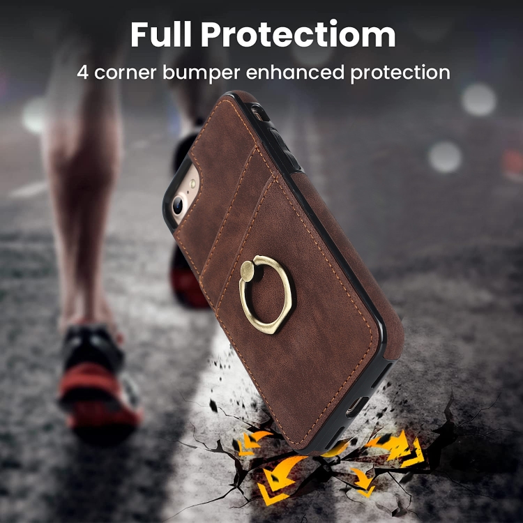 Funda de Teléfono de Cuero con Parche Vintage y Soporte para Anillo para iPhone Se 2022 / Se 2020 / 8 / 7 (Marrón)