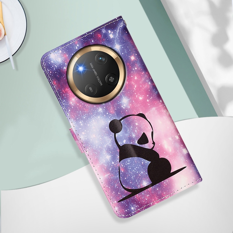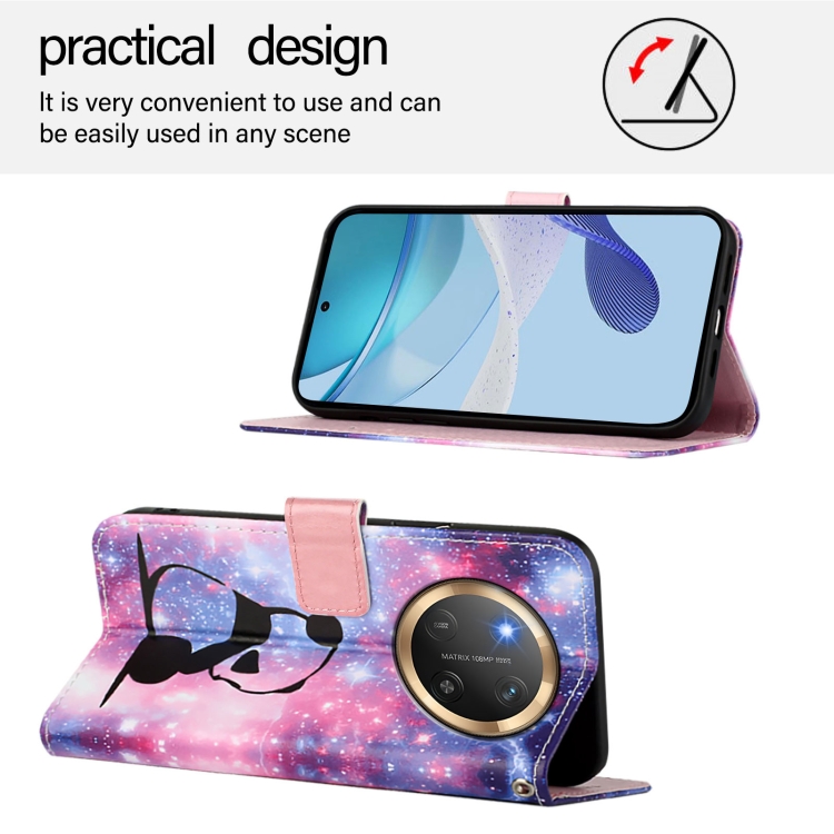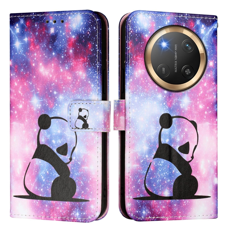 Funda de Cuero para Honor X9C 5G con Patrón de Dibujo y Tejido Liso (Panda Bebé)
