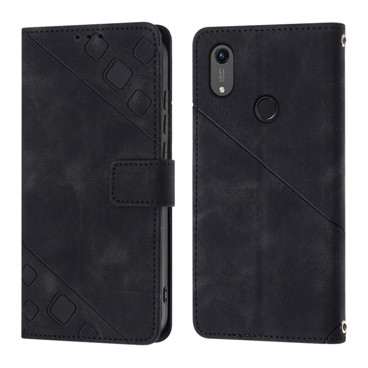Funda de Cuero en Relieve para Honor 8A Y6 Pro 2019 Play 8A Pro 8A 2020 Prime Huawei Enjoy 9E Y6 2019 Y6S 2019 (Negro)