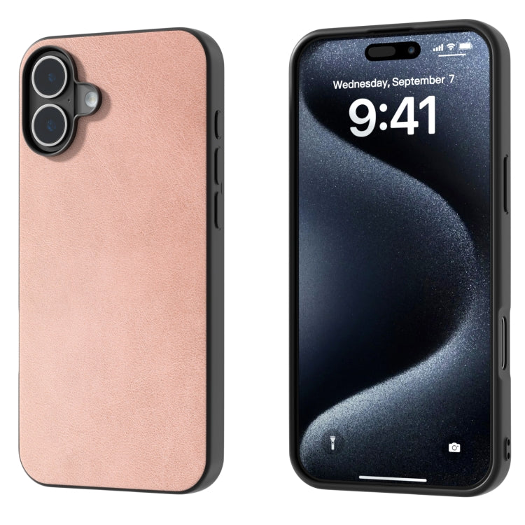 Funda de Teléfono Pu Textura Becerro Dos Colores Marco Negro iPhone 16 (Rosa)