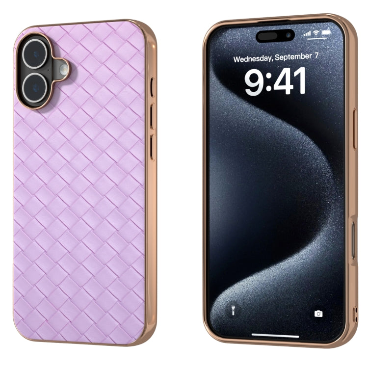 Funda de teléfono Pu textura tejida marco galvanizado iPhone 16 (Morado)