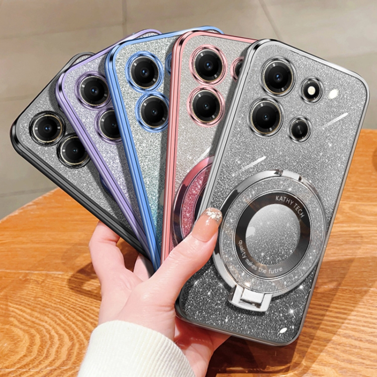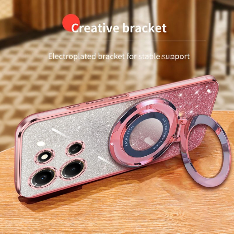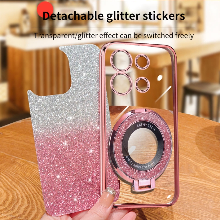 Funda de TPU con Soporte Redondo y Purpurina Degradada Plateada para Infinix Note 30I (Rosa)