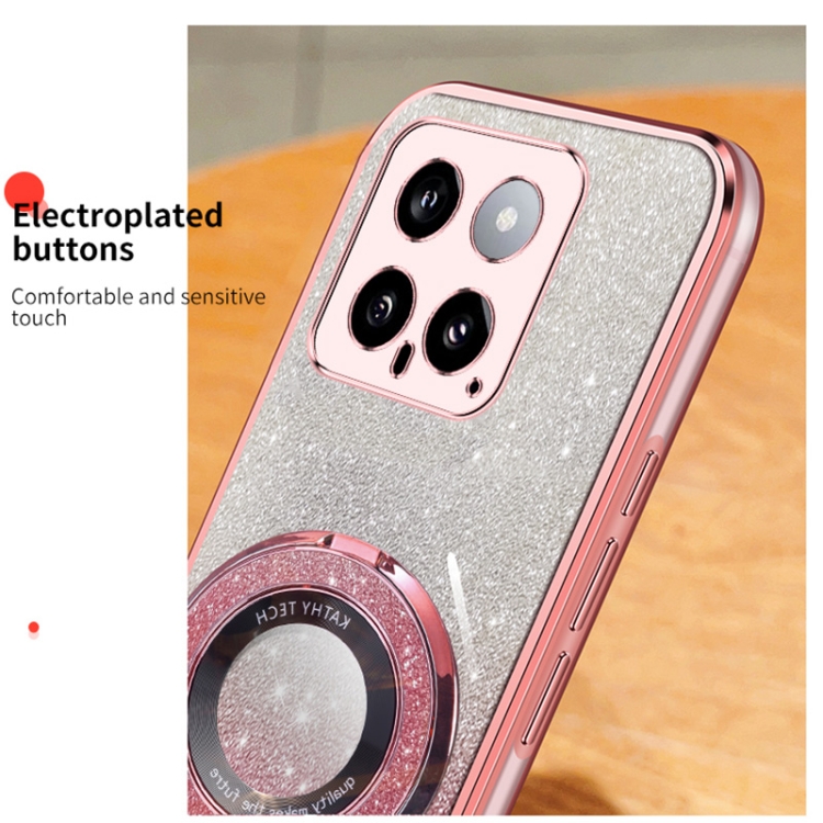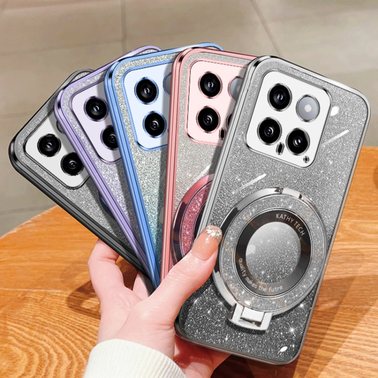 Funda De Teléfono De Tpu Con Soporte Redondo Y Purpurina Degradada Plateada Para Xiaomi 14 (Plateada)