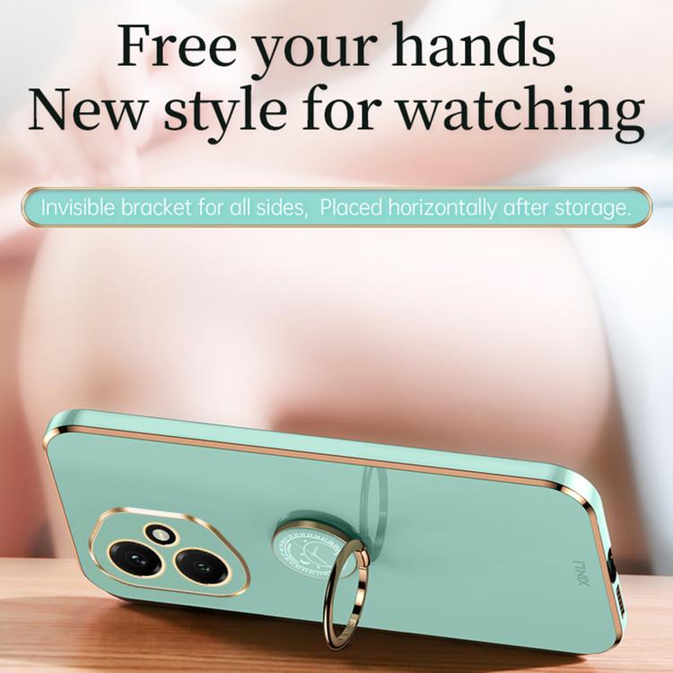Funda de TPU con borde recto 6D galvanizado y soporte para anillo para Honor 400 Global (156,5 mm) XINLI (verde menta)