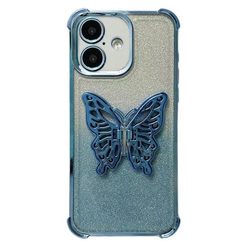 Funda de TPU con diseño de mariposa 3D brillante y galvanizada para iPhone 17, a prueba de golpes y con cuatro esquinas (azul degradado)