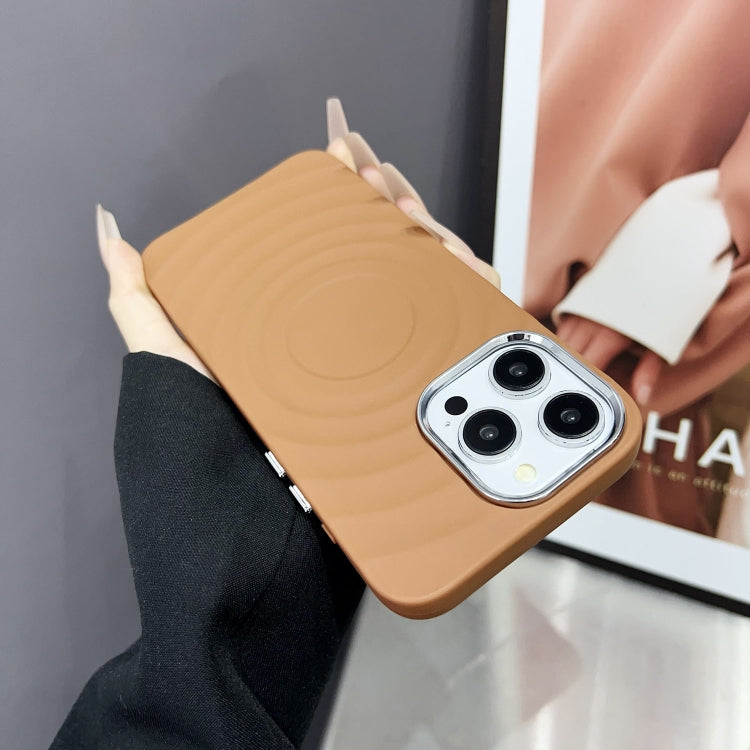 Funda TPU con Marco de Lente Plateado Magsafe para iPhone 16 Wave (Marrón)