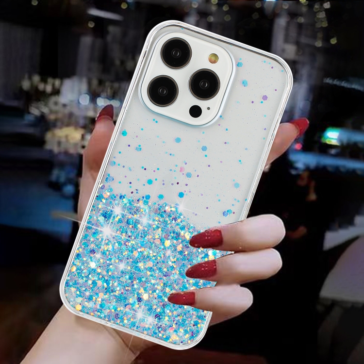 Funda TPU con Marco Transparente y Polvo Noctilucente para iPhone 15 Pro Max (Azul)