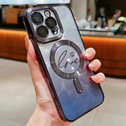 Funda TPU con Purpurina y Degradado Plumas de Amor duales para iPhone 12 Pro Max (Negra)