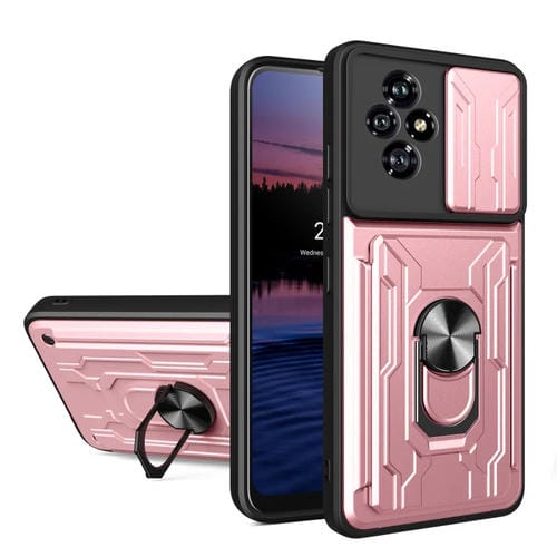 Funda TPU+PC Deslizante con Ranura para Tarjetas para Honor 200 5G (Oro Rosa)