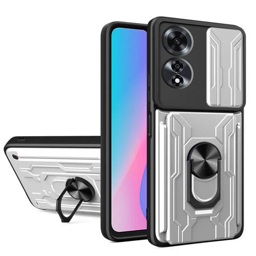 Funda Deslizante de TPU y PC con Ranura para Tarjetas para Oppo A60 4G (Blanco)