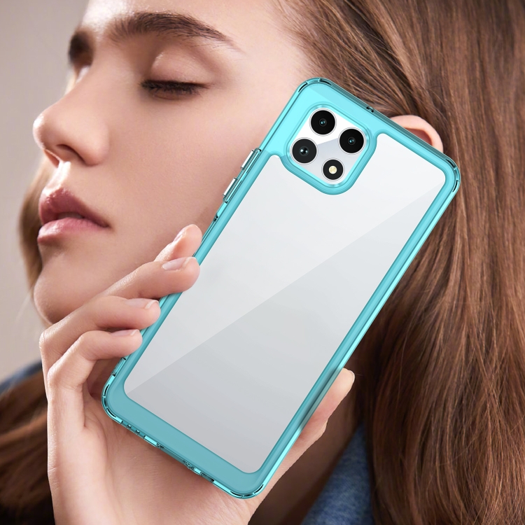 Funda híbrida Acrílico TPU para T-Mobile Revvl 7 5G (Azul Transparente)
