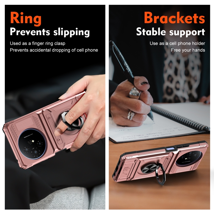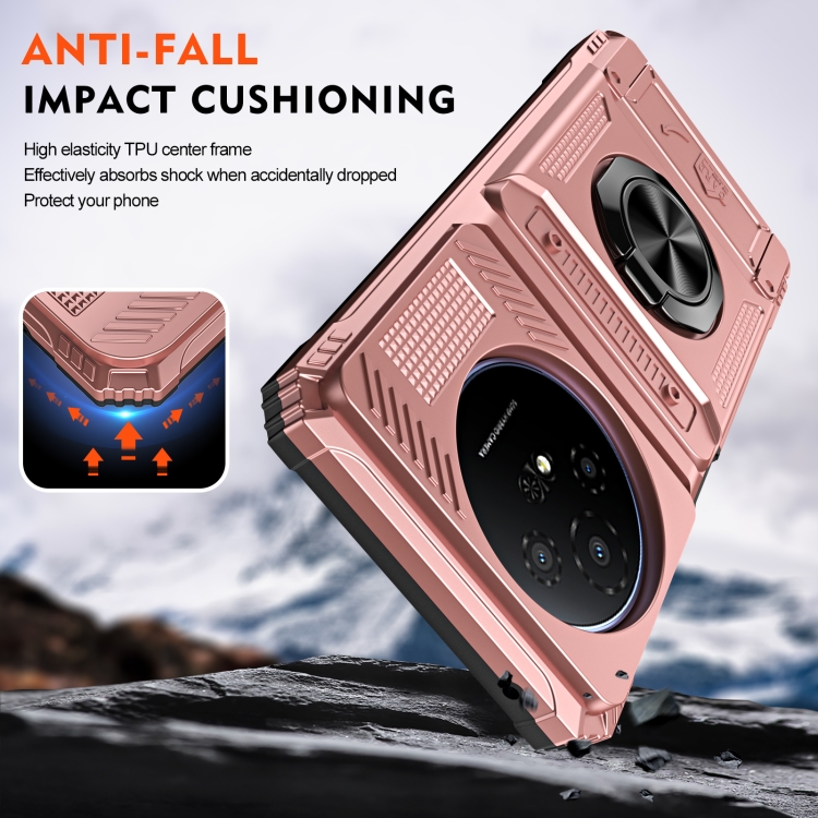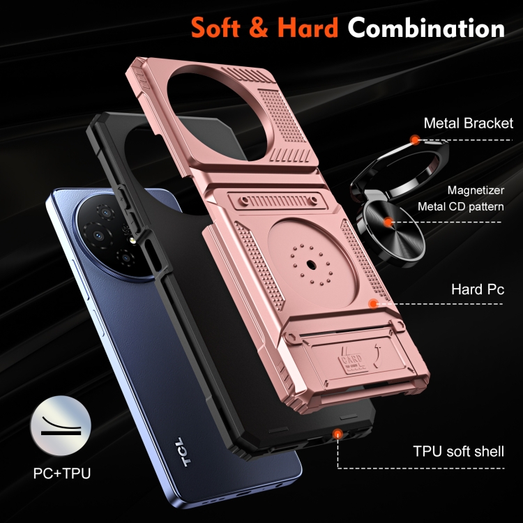 Funda Híbrida TPU y PC para TCL 50 XL 5G con Soporte de Anillo de Metal (Oro Rosa)