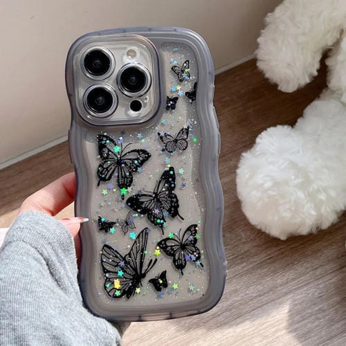 Funda híbrida TPU y PC iPhone 16 Pro borde ondulado mariposa (Negra)