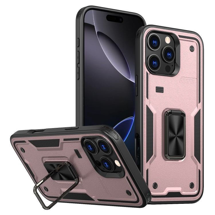 Funda híbrida TPU y PC con soporte de anillo para iPhone 16 Pro (Oro Rosa)