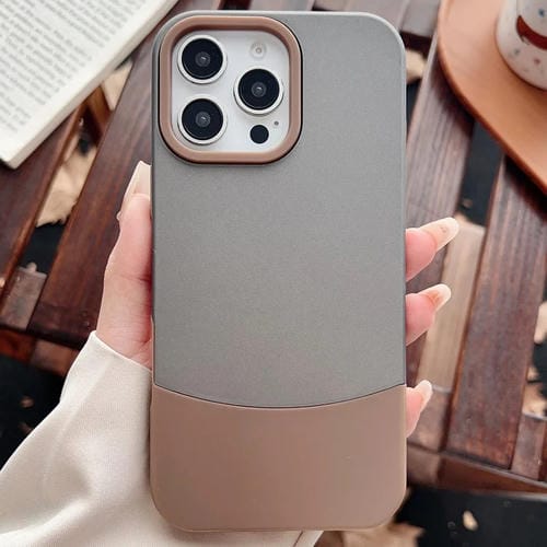 Funda híbrida TPU y PC para iPhone 13 Pro Max con contraste de color 2 en 1 (Gris Oscuro y Marrón)