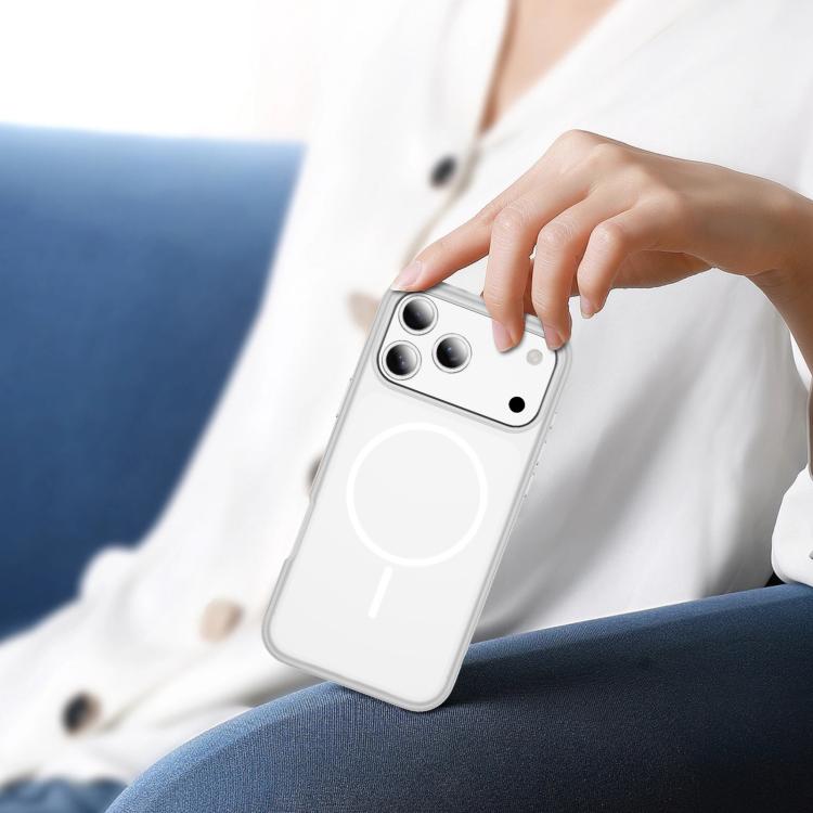 Funda híbrida de TPU y PC para iPhone 17 Pro, imitación MagSafe original, bicolor (blanco transparente)