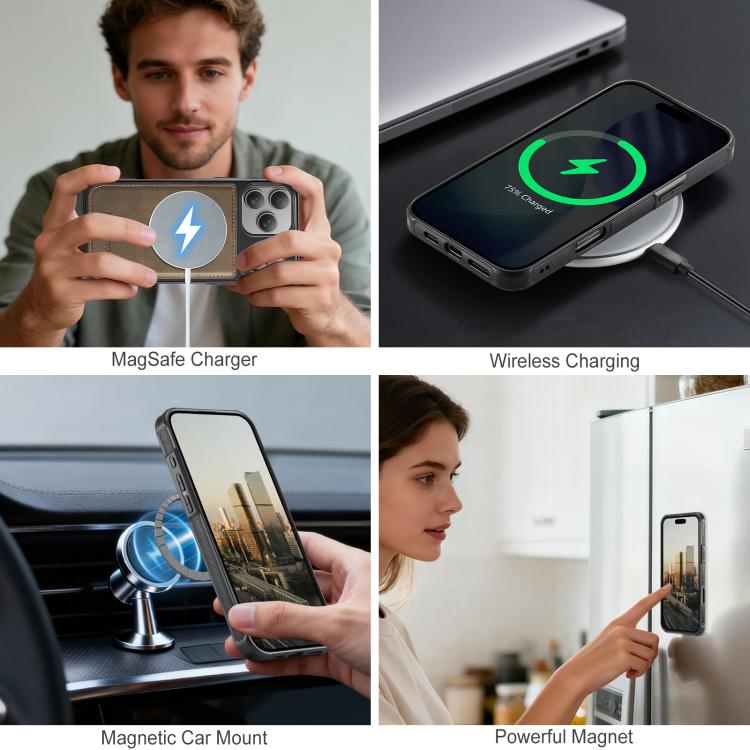 Funda magnética MagSafe AutSpace A05 2 en 1 con textura de piel de becerro retro para iPhone 17 Pro Max (Marrón)