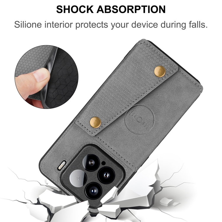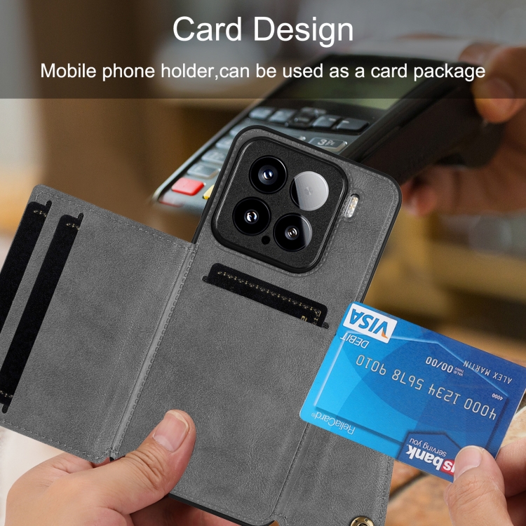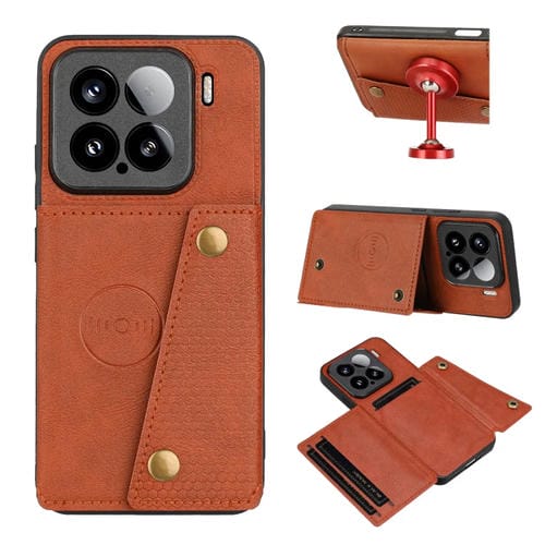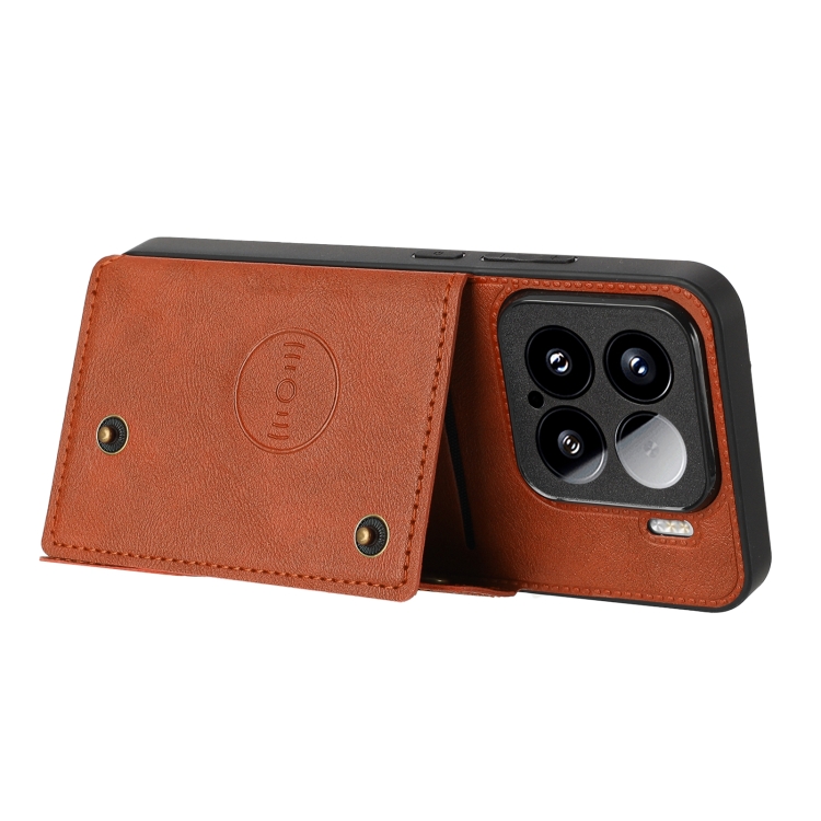 Funda Magnética Para Teléfono Xiaomi 15 Con Ranuras Para Tarjetas Y Doble Hebilla (Marrón)