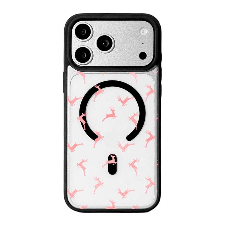 Funda magnética resistente con borde negro pintado para iPhone 17 Pro Max, serie navideña (Reno rosa saltando).