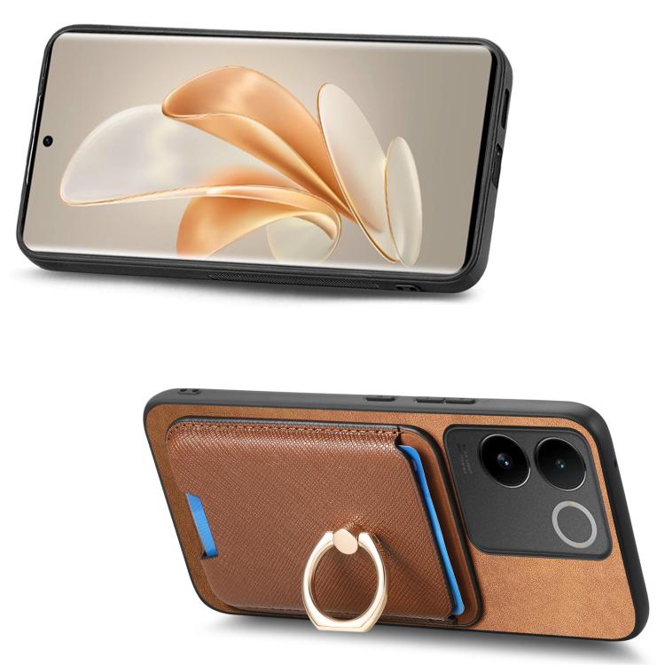 Funda Magsafe para Vivo Y300+ con Anillo de Cuero Retro Cruzado y Ranuras para Tarjetas (Marrón)