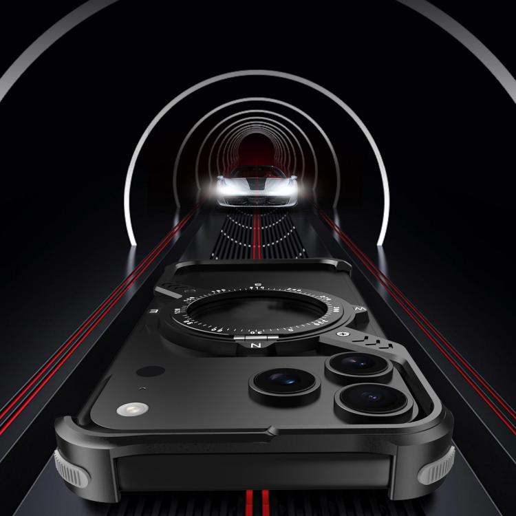 Funda metálica MagSafe sin marco para iPhone 17 Pro, con soporte 360°, forma de S, con airbag (naranja)
