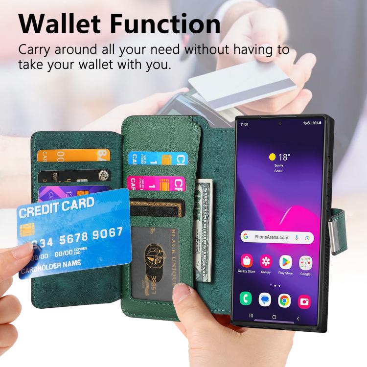 Funda Neo MagSafe RFID antirrobo con cremallera para Samsung Galaxy S24 Ultra 5G, de cuero estilo retro (verde)