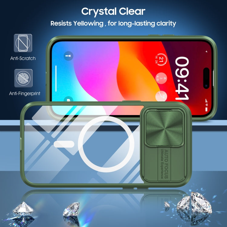 Funda para iPhone 12 Pro Max con Cubierta Deslizante Acrílico Transparente PC TPU Magsafe (Verde Oliva)