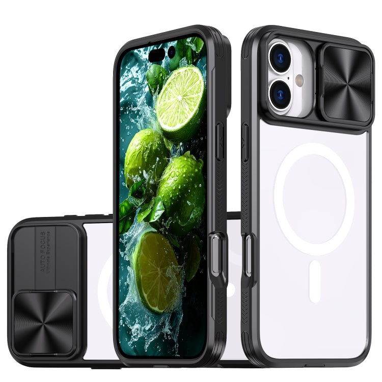Funda para iPhone 16 con Cubierta Deslizante Acrílico Transparente PC TPU Magsafe (Negra)