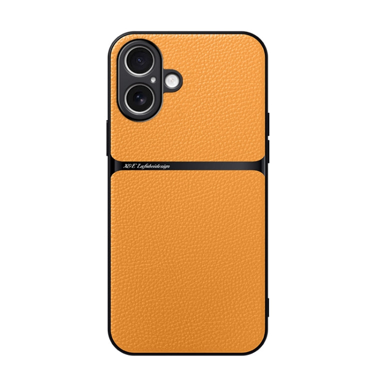 Funda para iPhone 16 de Piel de Lichi con Cierre Magnético y Protección Contra Golpes (Amarilla)