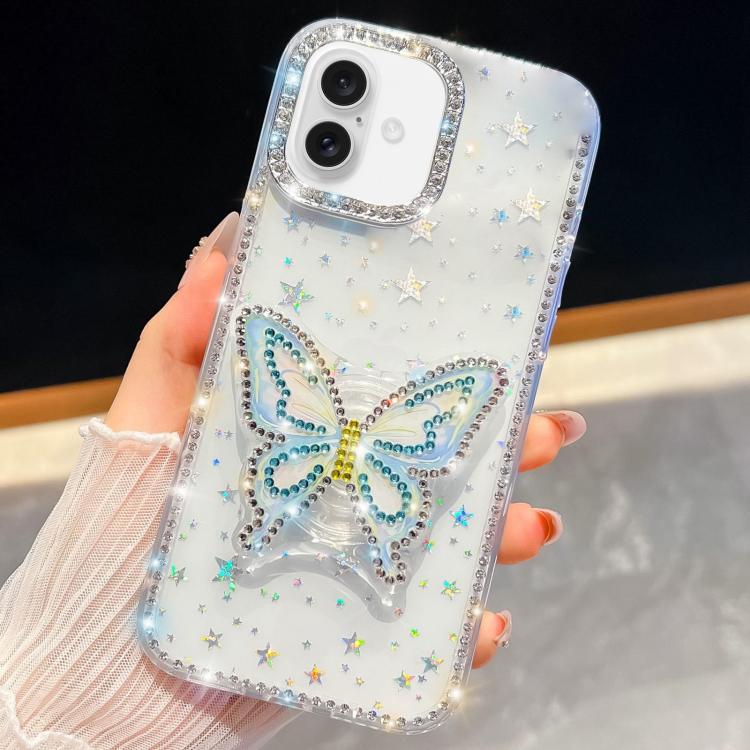 Funda para iPhone 17 con diseño de mariposa y purpurina de diamante (estrellas transparentes)