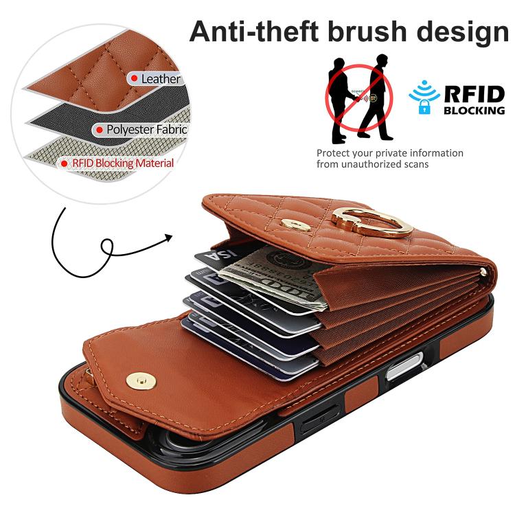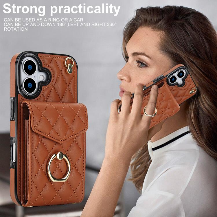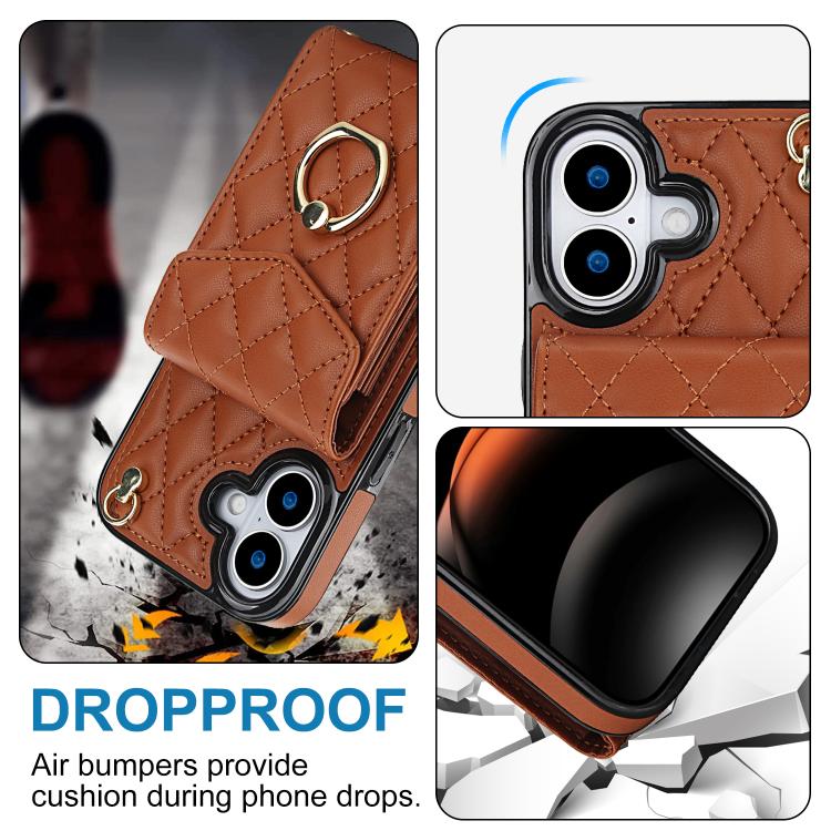Funda para iPhone 17 con textura rómbica y cordón largo (marrón)