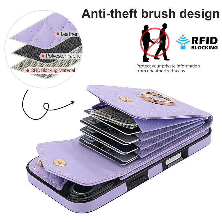 Funda para iPhone 17 con textura rómbica y cordón largo (morado claro)