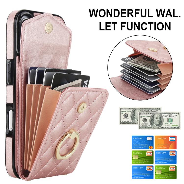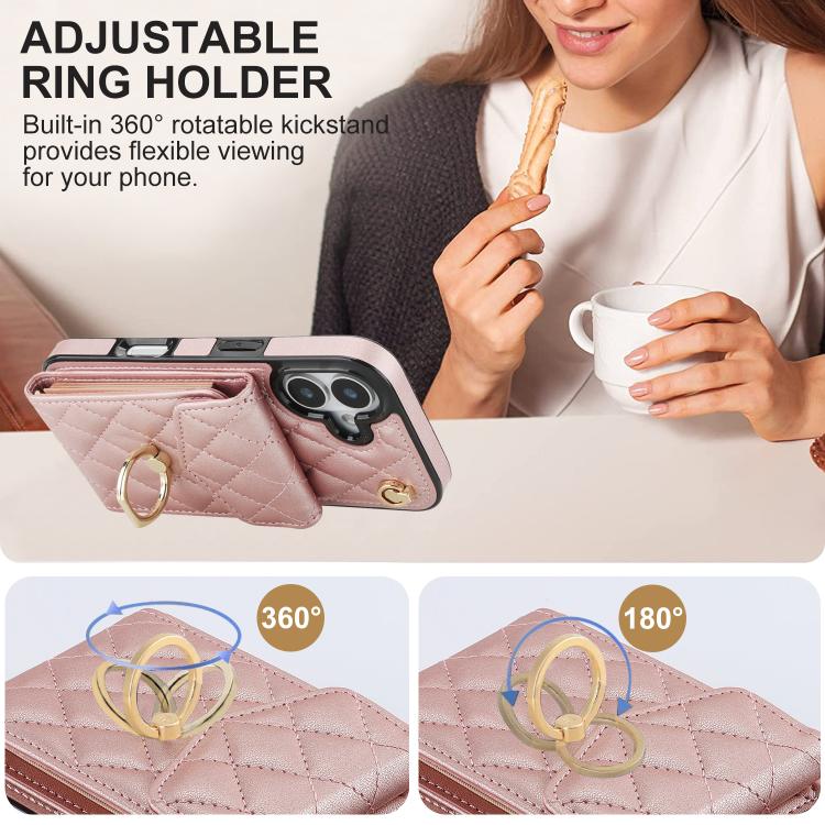 Funda para iPhone 17 con textura rómbica y cordón largo (oro rosa)