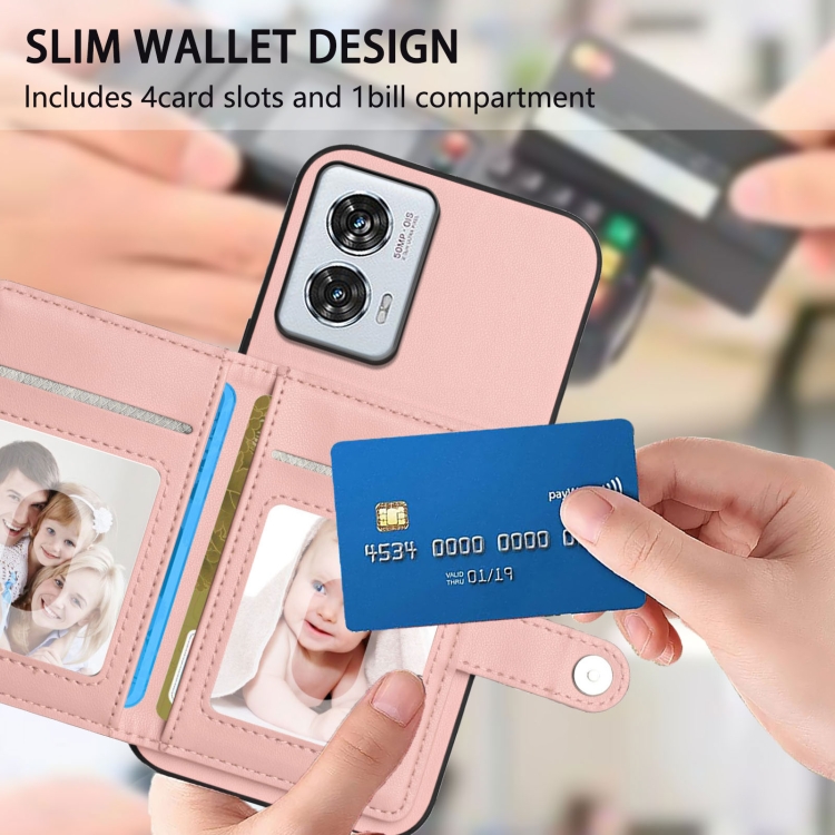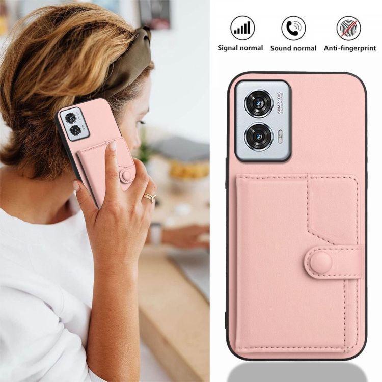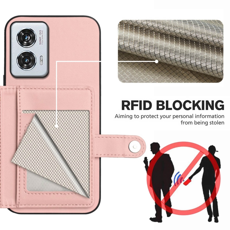 Funda para Teléfono Antirrobo con Botón RFID y Tarjetero para Motorola Edge 50 Fusion (Rosa)