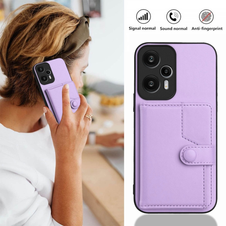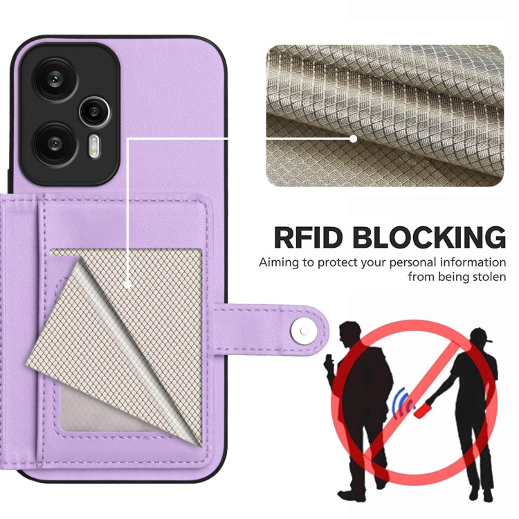 Funda para Teléfono Antirrobo con Botón y Tarjeta Rfid para Xiaomi Poco F5 5G (Morado)