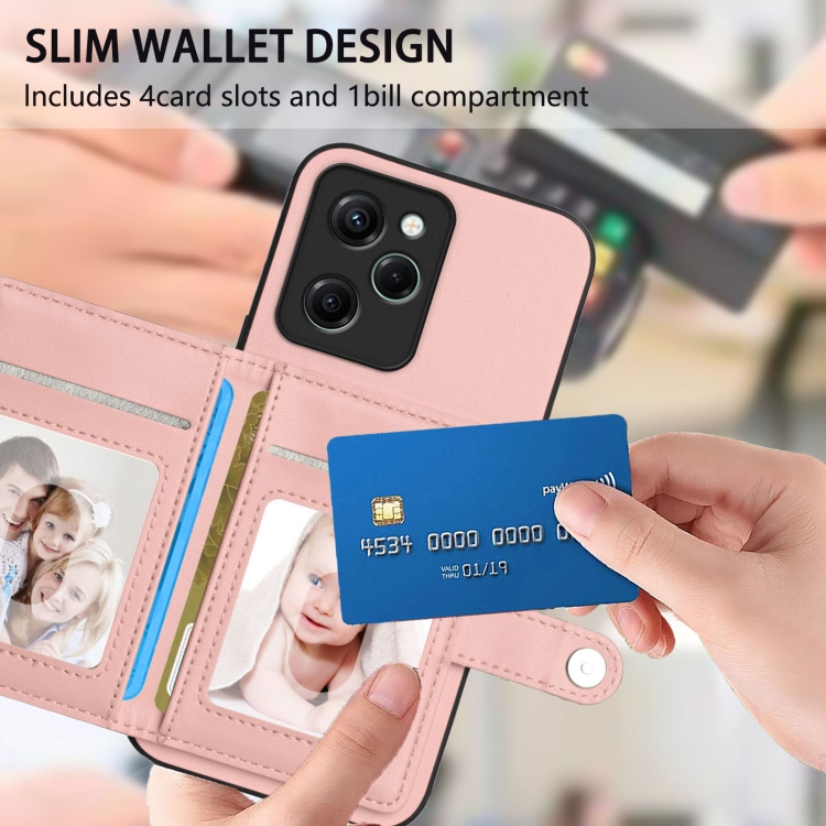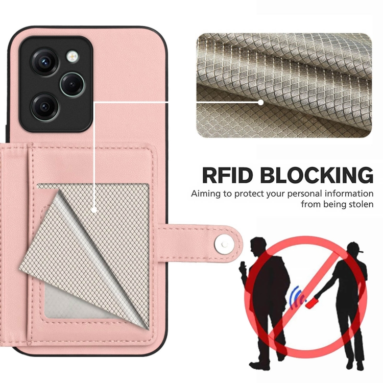 Funda para Teléfono Antirrobo con Botón y Tarjeta Rfid para Xiaomi Poco X5 Pro (Rosa)