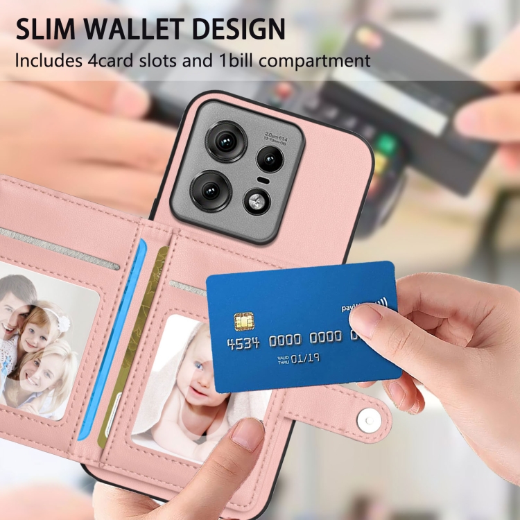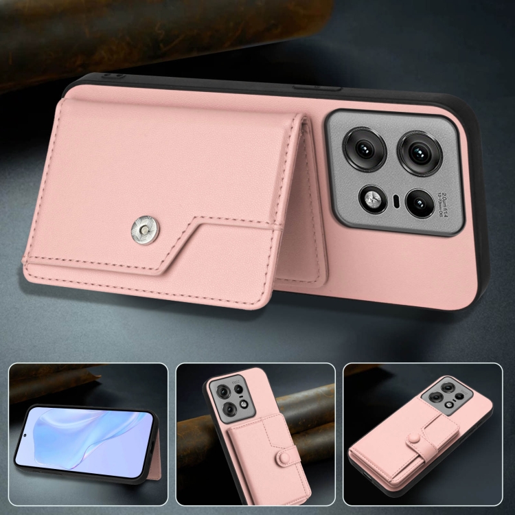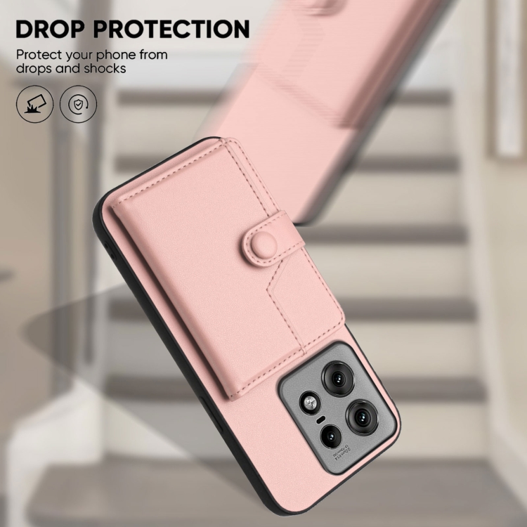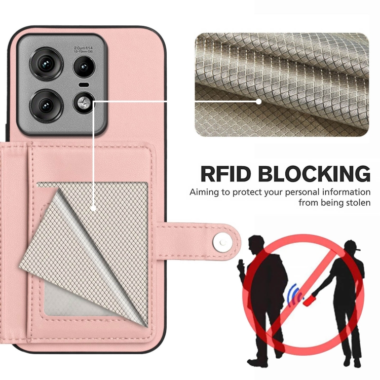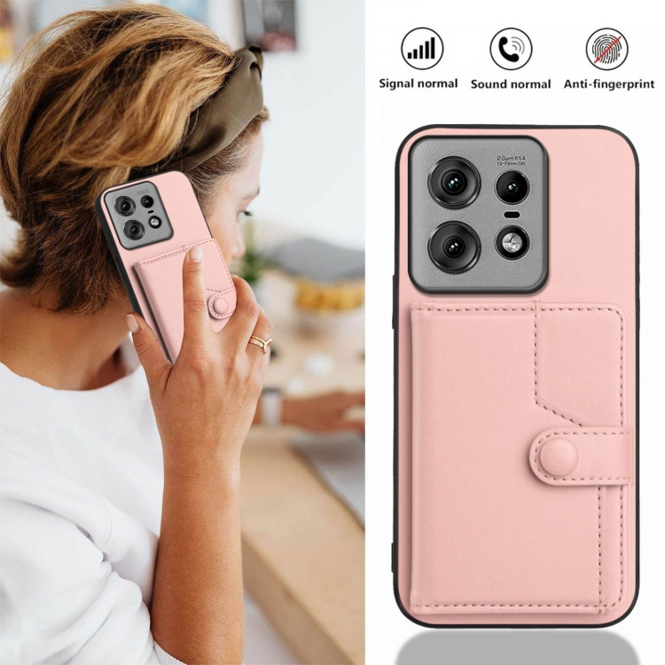 Funda Antirrobo con Botón y Tarjetero RFID para Motorola Edge 50 Pro (Rosa)