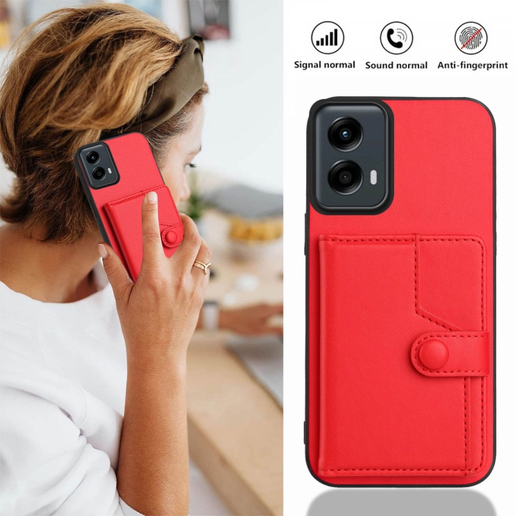 Funda Antirrobo con Botón y Tarjetero RFID para Motorola Moto G 5G (2024) (Rojo)