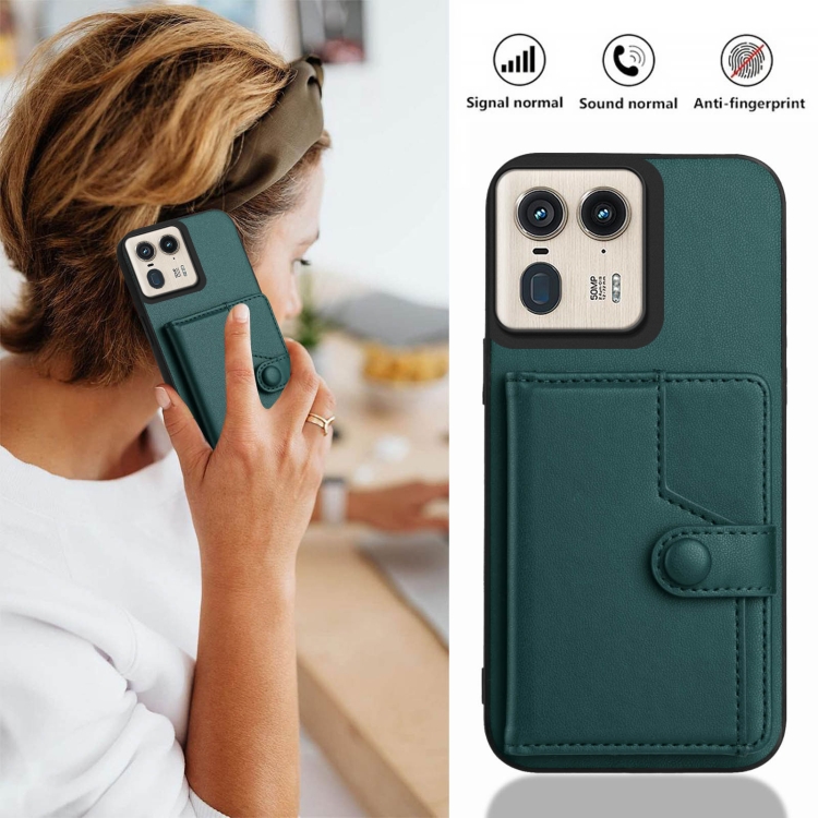 Funda Antirrobo para Motorola Moto X50 Ultra con Botón y Tarjetero RFID (Verde)