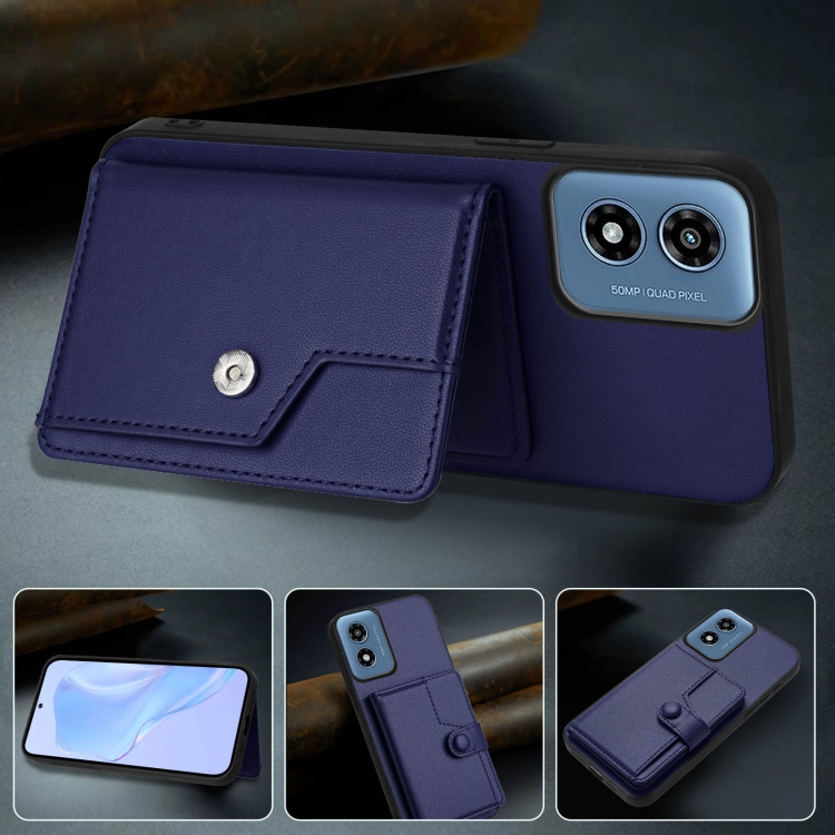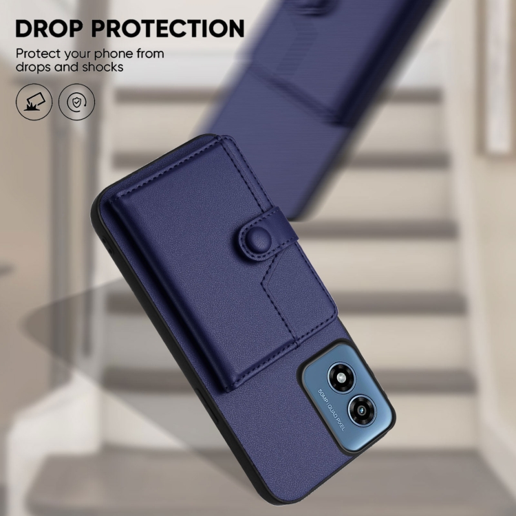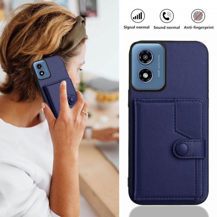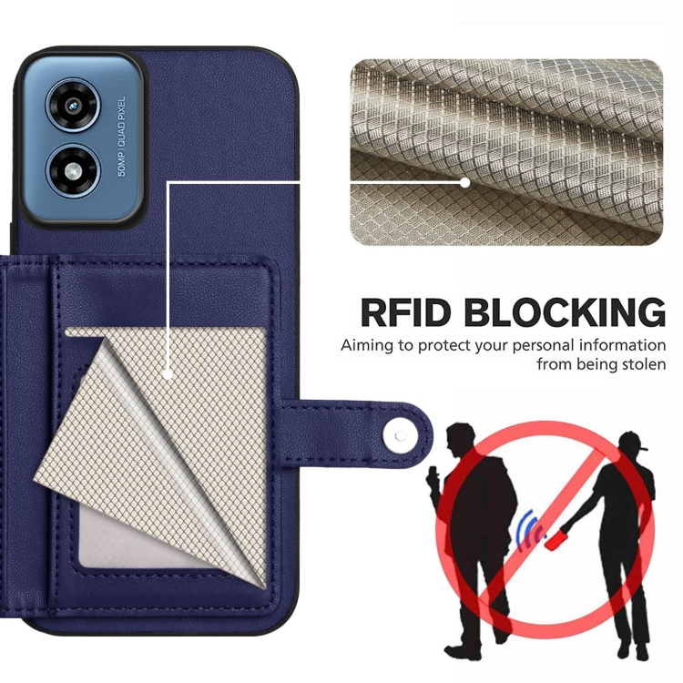 Funda para Teléfono Antirrobo RFID con Botón y Tarjetero para Motorola Moto G Play 4G (2024) (Azul)