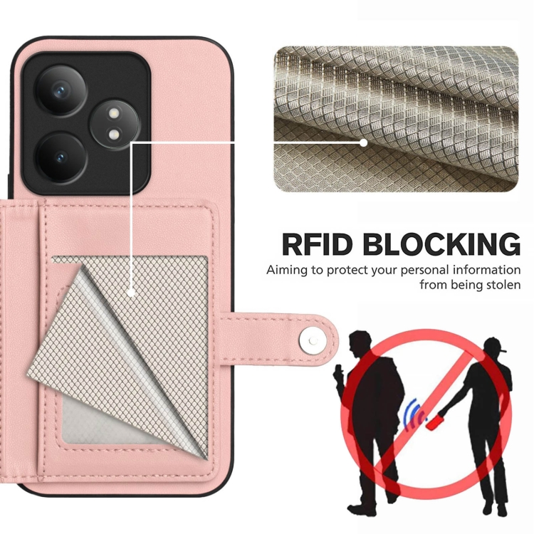 Funda para Teléfono Antirrobo Rfid con Botón y TaRJetero para Realme Gt Neo6 Se (Rosa)
