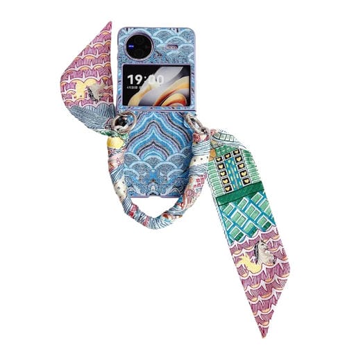 Funda para Teléfono con Cobertura Total con Bordado de Nubes Propicias para Vivo X Flip con Bufanda/Pulsera (Azul)
