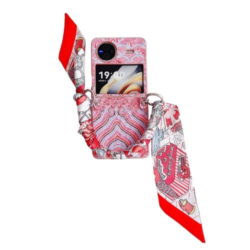 Funda para Teléfono con Cobertura Total con Bordado de Nubes Propicias para Vivo X Flip con Bufanda/Pulsera (Rojo)